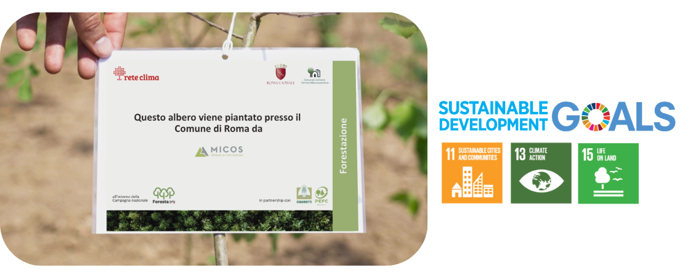 A novembre, MICOS, insieme al team di Rete Clima, ha messo a dimora nel quartiere Mezzocammino nel Municipio IX di Roma, 70 nuove piante tra alberi e arbusti. Mezzocammino è un vasto territorio caratterizzato morfologicamente da piccole alture in parte di origine naturale e in parte di origine antropica. Il progetto di forestazione, che interesserà una superficie di circa 3 ha, è collocato in una grande area verde destinata a parco naturale.