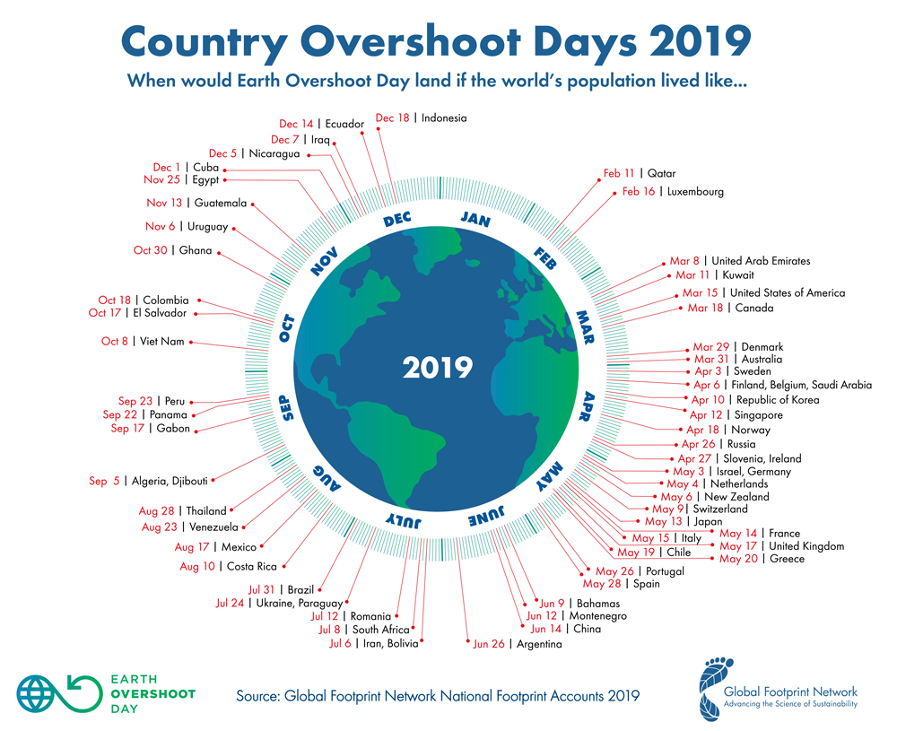 Ma da oggi, giorno dell'Earth Overshoot Day 2019, il nostro debito diventa più concreto nel senso che oggi cade virtualmente il giorno in cui i nostri prelievi di risorse superano la capacità annuale della Terra di rigenerazione.